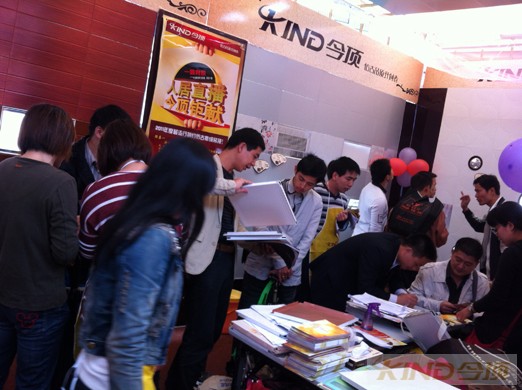 展位外圍,今頂虎豹組率領臨促人員高舉今頂品牌標語牌穿插的會場的各個角落,泉州今頂導購團隊與今頂福建銷售團隊坐鎮展廳,為前來了解品牌的業主做詳細介紹。由于本次活動非常受市民追捧,今頂展位也是多次被市民“包圍”的水泄不通。在工作人員的努力下,整個活動過程也在火爆的場面下順利進行。
