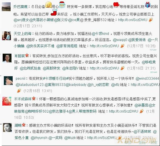 12月15日,今頂公司為感恩回饋廣大博友長期以來對今頂品牌的支持與關注,特推出“暖冬行動,微博傳遞,繽紛好禮轉不停”微博有獎轉發活動,為廣大博友們在這寒冷的冬天里送去今頂公司最溫暖的祝福!