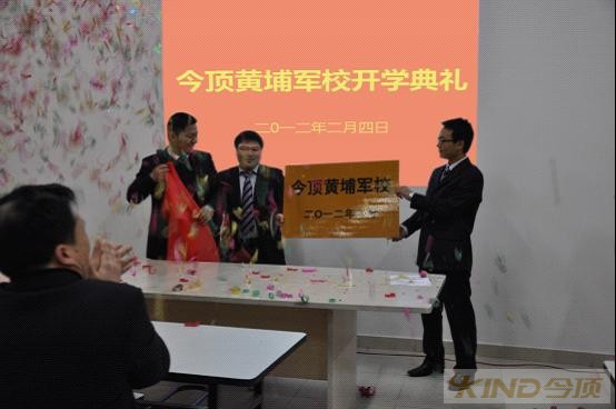 09:18,今頂集成吊頂周建成總經理為黃埔軍校舉行揭牌儀式,從此宣布今頂集成吊頂黃埔軍校培訓系統的正式成立,相信在各界人士的共同關懷下,在所有今頂人的共同努力下,今頂黃埔軍校一定會越辦越好,為營銷一線和全國代理商輸送更加優秀的人才,2012年今頂也將迎來一個嶄新的明天!
