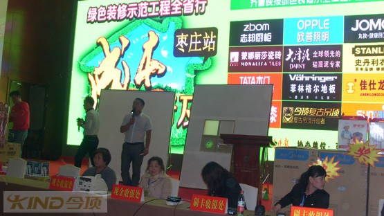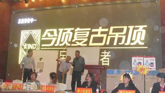 在今頂代表上臺(tái)與棗莊業(yè)主見(jiàn)面后,今頂代表就今頂復(fù)古吊頂產(chǎn)品的綠色環(huán)保做了闡述。眾所周知,作為集成吊頂十大品牌的今頂復(fù)古吊頂早在2011年就通過(guò)多年努力獲得了相關(guān)機(jī)關(guān)頒發(fā)的“中國(guó)綠色低碳環(huán)保品牌”榮譽(yù),接下來(lái)今頂代表還就今頂LED照明中如何深度在綠色環(huán)保中的成效做了闡述。最后,為了能使更多業(yè)主真正通過(guò)專業(yè)講解中深刻了解集成吊頂,今頂代表還在臺(tái)上為廣大業(yè)主做了集成吊頂相關(guān)輔件介紹。使得到場(chǎng)業(yè)主對(duì)今頂復(fù)古吊頂更加信賴,紛紛下單為自己挑選滿意的今頂復(fù)古吊頂。