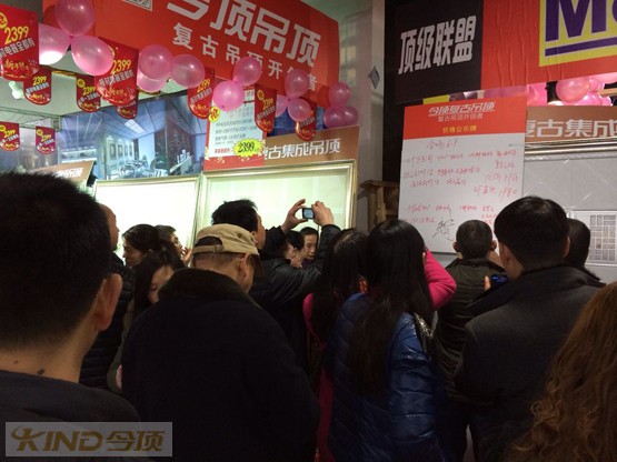 集成吊頂高端品牌,今頂復古吊頂在瀘州團購會上被到場業主熱烈追捧!無論是當天活動的優惠力度還是現場產品,都傳遞了今頂作為集成吊頂高端品牌的絕對實力,現場的火爆也是今頂瀘州經銷商沒有想到的,工作人員在當天的活動中也是累字當頭,但是為了能為消費者解決居室頂部空間的方案大家也是充滿了幸福的微笑!