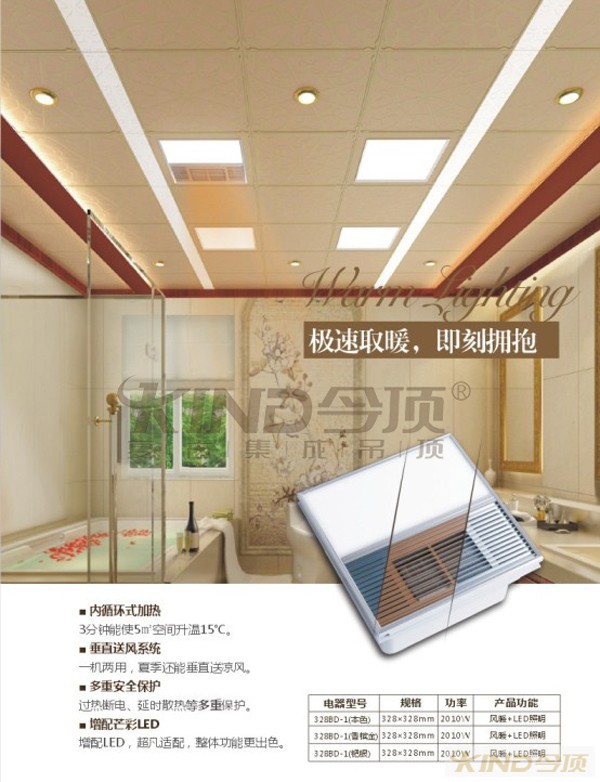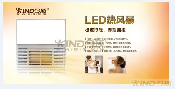 不是簡(jiǎn)單的功能堆砌,更不是相互割裂的各種功能大雜燴,今頂2014 LED熱風(fēng)暴新品用心把每個(gè)功能力求完美的融合,安全取暖、垂直送風(fēng)與節(jié)能照明的完美融合,將科技的藝術(shù)之美推向極致。憑借出色的安全性能與完美的兼顧功能,秒殺一切簡(jiǎn)單功能堆砌的浴室取暖器,給您帶來(lái)非凡的洗浴享受。