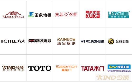 中國好家居品牌陣營(排名不分先后):馬可波羅瓷磚、圣象地板、索菲亞衣柜、顧家家居、朗斯淋浴房、方太廚電、意風家具、瑞寶壁紙、科勒廚衛、金牌櫥柜、今頂復古吊頂、TOTO、喜臨門寢具、TATA木門、松堡王國兒童家具。