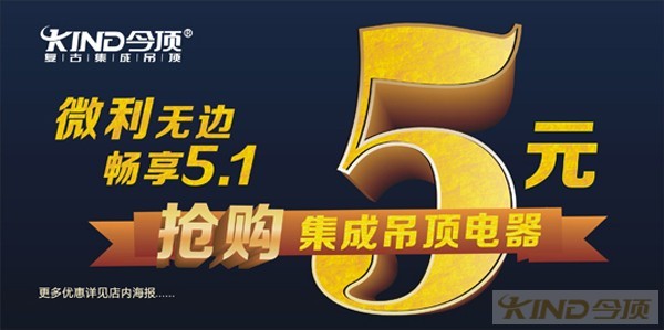 五一裝修哪里去? 當然“5元”搶購今頂吊頂電器去!