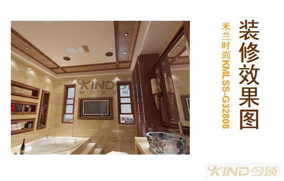 今頂復古吊頂2014新品“米蘭時尚”系列,以白色系為基調。源自米蘭最具代表性的建筑空間,歷就百年、尊崇的經典。“米蘭時尚”系列板材在白色底紋的基礎上,加入點點印記及縱橫交錯的壓紋,透析著時尚與古樸的張力,變幻自然,飄逸流暢。