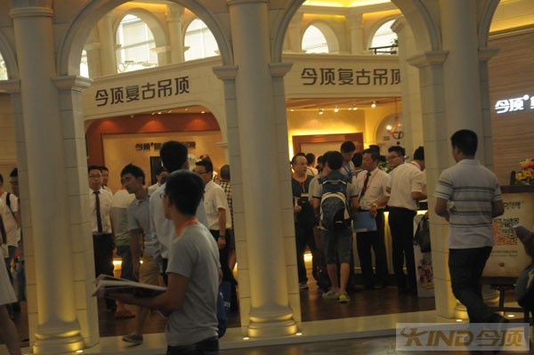 這一地標建筑的引入使得現場觀眾立即被今頂這一“大手筆”吸引,紛紛前來展廳進行合影,繼而再被展館內濃濃的復古吊頂體驗間所吸引,進入展館內很多觀眾都慢慢品味今頂復古集成吊頂那菲比尋常的產品魅力!在每一個體驗間的停留都帶給人們不一樣的感受,很多觀眾對在今頂體驗間的感受贊不絕口!
