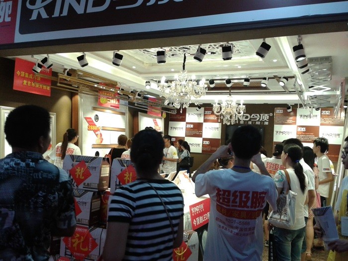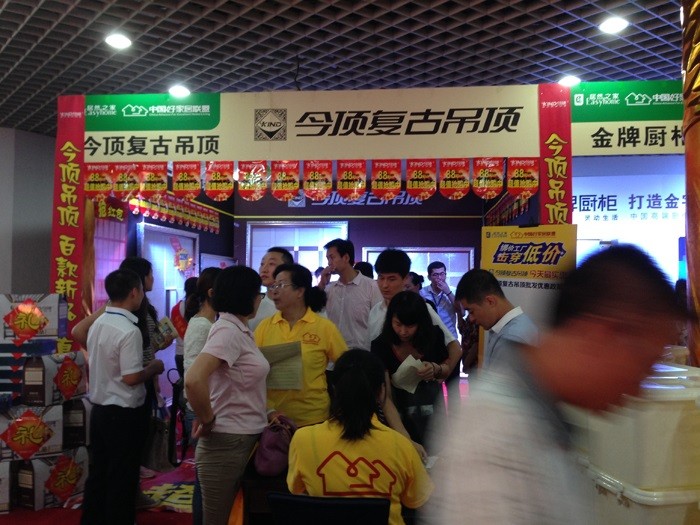 呼和浩特今頂,在好家居現(xiàn)場展現(xiàn)復(fù)古吊頂?shù)谝黄放频镊攘τ璧綀鰳I(yè)主;