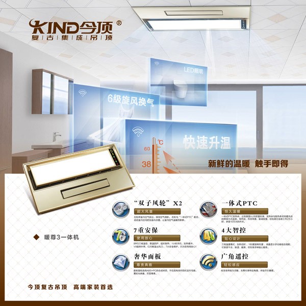 這是一款集換氣扇、風暖、LED為一體的家居產品