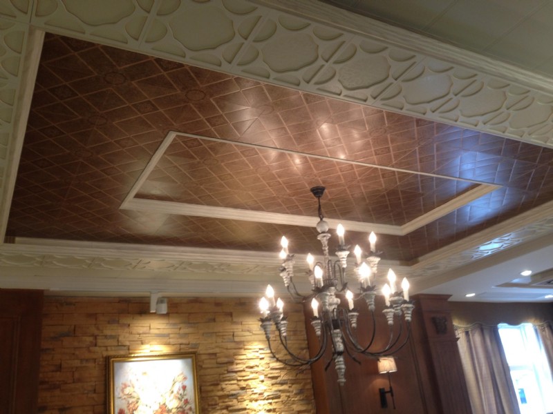 今頂復古集成吊頂扣板使用純鋁的最高等級6系鋁材,鋁的純度達到99.5%以上,氧化后不會有黑的,而且不含任何對人體有毒的汞、鉻、鎳、鉛等重金屬,達到食品材料級,絕對的健康、環保。