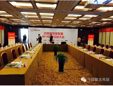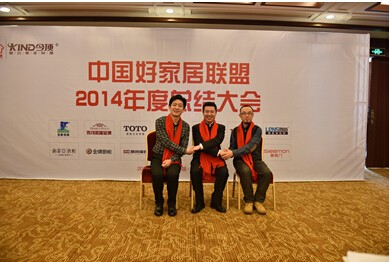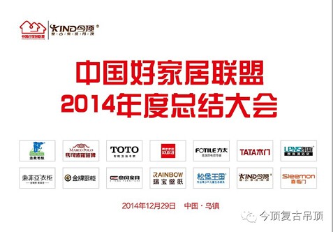 12月29日,來自圣象地板、馬可波羅瓷磚、TOTO衛浴、顧家家居、方太廚電、TATA木門、朗斯淋浴房、索菲亞衣柜、金牌廚柜、意風家具、瑞寶壁紙、松堡王國兒童家具、今頂復古吊頂、喜臨門家居等14大全國頂尖建材家居品牌的總裁、董事長及營銷總監齊聚浙江烏鎮,參加由今頂復古集成吊頂主場承辦的“中國好家居聯盟2014年度總結大會”。