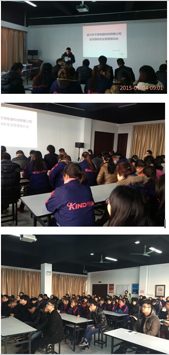 2015年1月4日,今頂公司全體員工參加了消防知識培訓會議。培訓會上,今頂公司副總經理華偉向全體員工傳達了秀洲區王店鎮政府關于加強消防安全的文件,并對前段時間發生在秀洲區的兩起火災事故進行分析和警醒。