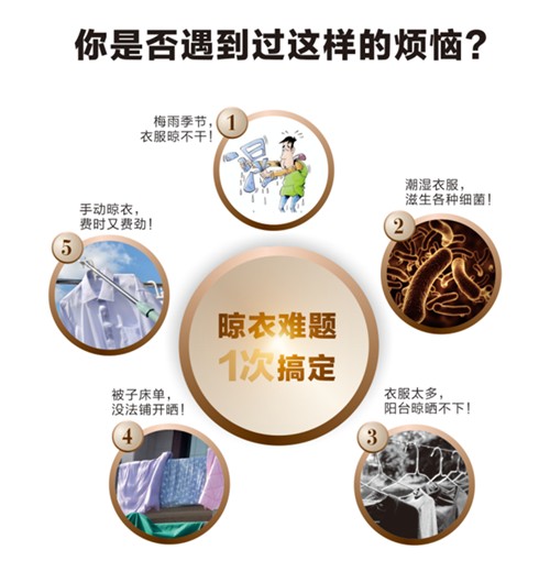 陽光晾曬能殺滅衣物上的細菌,既環保又健康,是最好的干衣方式。現在住進了高層,有些幾乎無法享受到陽光,非常的不習慣。一到梅雨季節,潮濕的空氣,衣服晾好多天都干不了。潮濕的衣物容易滋生螨蟲及各種細菌,小孩的貼身衣物,實在讓人放心不下。