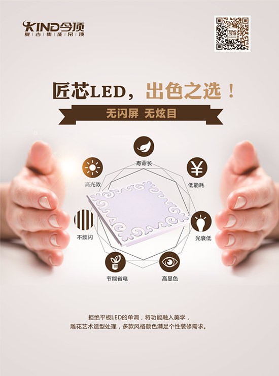 此次中國集成吊頂產業博覽會上,今頂還將亮相匠芯Ⅱ代LED,據悉匠芯Ⅱ代LED擁有4種造型,6款花色,適配各種家裝風格。無論是歐式復古、中式典雅還是浪漫混搭都可以完美搭配。今頂從藝術審美與人文情懷的角度出發,將照明功能融入家居設計美學,兼具內在寓意美及外在藝術美的匠芯Ⅱ代LED讓你的家居,呈現出不一樣的格調。