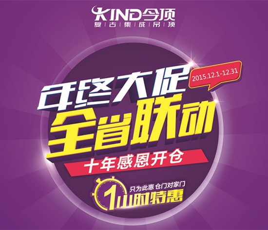 2015即將過(guò)去,今頂集成吊頂踏過(guò)輝煌的歷史,即將翻開(kāi)嶄新的篇章!今年的最后一場(chǎng)活動(dòng),以今頂公司牽頭的全國(guó)性大型活動(dòng),圓夢(mèng)2015,誓做最好的吊頂,及最大化優(yōu)惠給到業(yè)主! 10年來(lái)唯有的一次優(yōu)惠,史無(wú)前例的工廠讓利,感恩開(kāi)倉(cāng),開(kāi)倉(cāng)放糧!