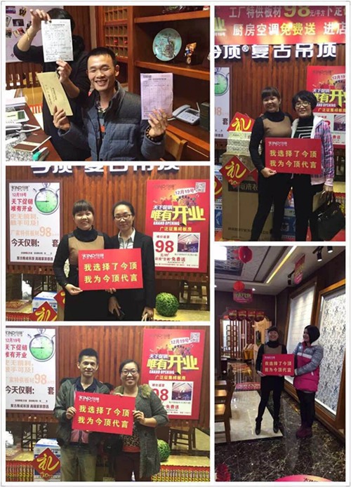 今頂集成吊頂湛江盛邦建材店的隆重開業,讓今頂的專賣店家人又多了一位新成員,繼續傳承著今頂復古吊頂經典亦風尚的理念!用優異的業績詮釋著實體店春的到來,也迎接著新的一年的到來!