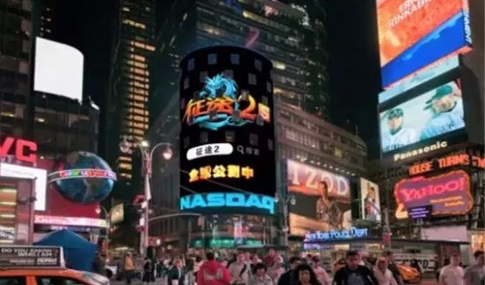 帶有強烈“史氏”風格的《征途2S》廣告片登錄美國城市地標紐約時代廣場,成為中國首個登上世界舞臺的網絡游戲。