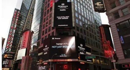 2014年12月11日,華為榮耀年度旗艦手機--榮耀6Plus廣告片相紐約時代廣場,其廣告標語則是頗為耐人尋味的"NotJust Bigger",這被解讀為其將向iPhone 6