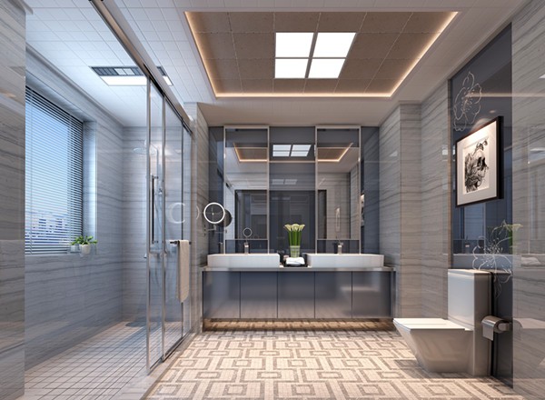 簡約空間的浴室通過白色扣板營造一種干爽潔凈的感覺。干濕分離的設計,配上中央區域雙彩LED照明的運用,令讓整個空間給人一種柔和的明亮潔凈感受。