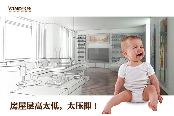 總層高2.7m-龍骨高度10~15cm-二級頂下沉15cm-地板5~10cm,安裝后層高=2.3m(十分壓抑),這還不算上鋪設地暖的高度,如果鋪設地暖,空間會更加壓抑!