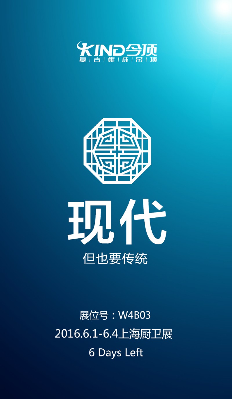 2016年第21屆中國(上海)國際廚房、衛(wèi)浴設(shè)施展覽會,今頂將用完美的吊頂產(chǎn)品將文化、藝術(shù)、生活態(tài)度與吊頂更好的融合在一個我們生活的空間,我們不僅僅做產(chǎn)品,更以為消費者提供具有深層價值的消費體驗為我們永遠(yuǎn)的目標(biāo)!