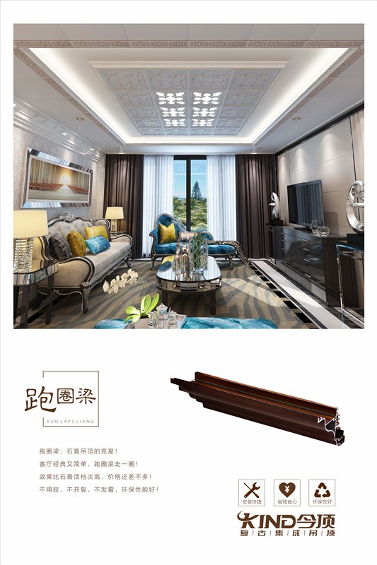 今頂大宅梁強烈的視覺沖擊,奢華、大氣,完美融入各種家裝風格。相對集成吊頂的安裝,今頂大宅梁免吊桿、免龍骨使得安裝變得更加便捷。相對于假梁,今頂大宅梁免油漆,環保性能好,讓室內裝修環境更綠色。吸頂安裝維護簡單,想裝哪里就裝哪里,滿足用戶個性搭配的需要!