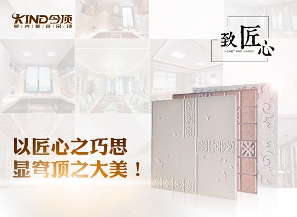 今頂集成吊頂的每一件產品,都凝聚了一批“工匠”的汗水和精湛技藝。以一如匠人的專注和堅守,繼“匠”系列后又打造出極具工匠精神的板材。無論是經典復古、繽紛浪漫還是時尚簡約,每一款作品都是藝術魅力與考究工藝的完美融合。