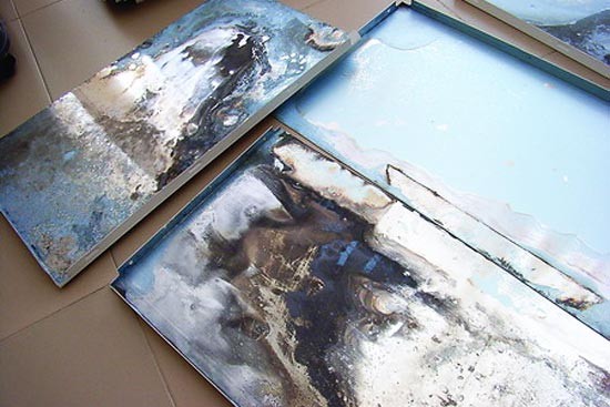 ? ? 光鮮明亮的鋁扣板使用不到一年就變色了,看著銹跡斑斑的鋁扣板,你或許還在納悶:鋁也會生銹嗎?可以肯定的告訴你,你被騙人了,這些都是無良商家為牟取暴利在材料上以次充好。廚房和衛生間濕度較大,過兩三年就會生銹出問題。