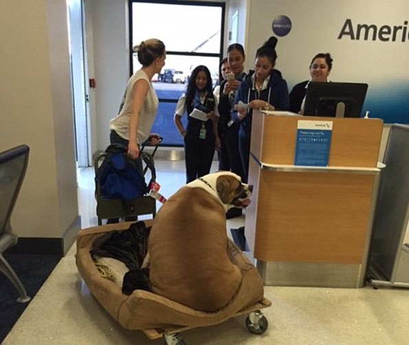 他叫漢克,來自美國,進入機場乘坐專用豪華手推車,還和主人一起登上了頭等艙旅行。