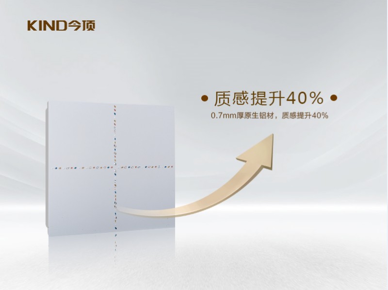 從0.5mm的行業基本用材,到堅持使用0.7mm高品質厚度鋁材,厚度增加的一小步,卻是吊頂高端化進程中提升的一大步。板材增厚,平整度、立體感的增強,隔音效果的改善,讓簡約的自然風情與源于生活的優雅藝術變得更為厚實,更有質感。