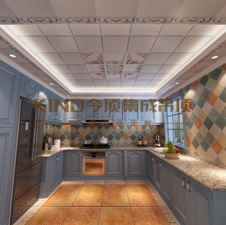 磚紅色其實也并非是中式的特例,板材邊緣淺淺的米黃色因為拼接像是穿梭于房屋頂部從而形成了一條一條羊腸小道。還算是濃郁的磚紅色不算清晰,搭配一個色系的整套廚具倒也干練整潔,主人對于整體的講究與生活品味顯而易見。